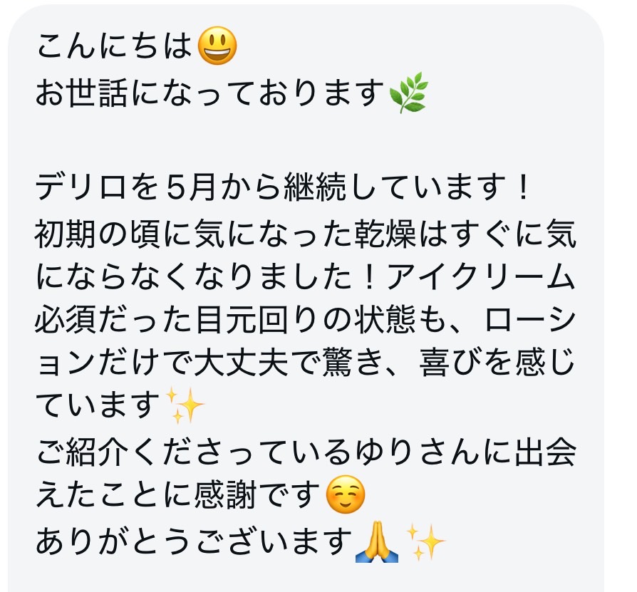 続けるうちに乾燥が気にならなくなり、目元のケアもローションだけで大丈夫というお声も。