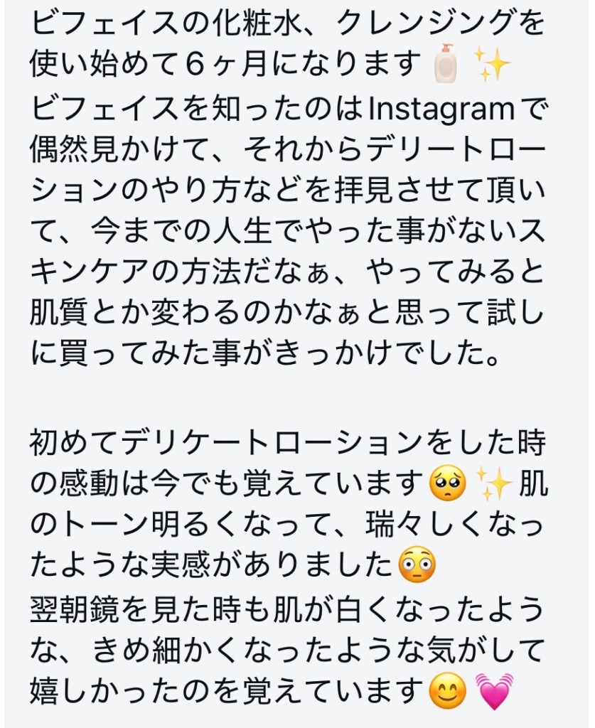 「ビフェイスに出会ってから肌質が変わった」と実感されています。