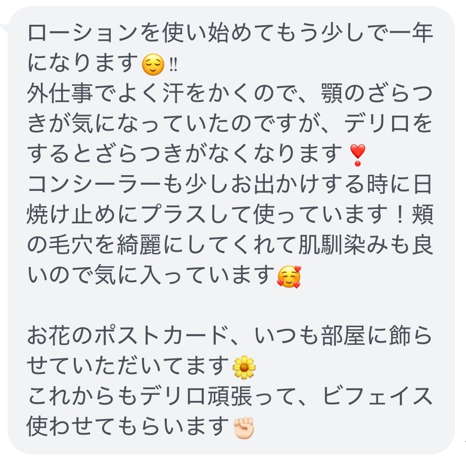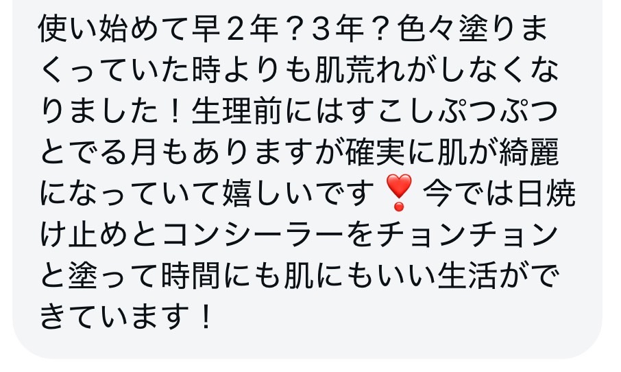 コンシーラーや日焼け止めだけで過ごせるようになったという変化を感じられる方のお声もいただきました。
